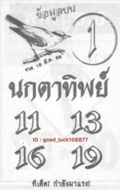 รับชมเลขเด็ดกันครบหมดแล้ว สำหรับ หวยนกตาทิพย์ล่าสุด ใบนี้ เชื่อว่าหลาย ๆ ท่านคงชื่นชอบ และถูกใจกัน